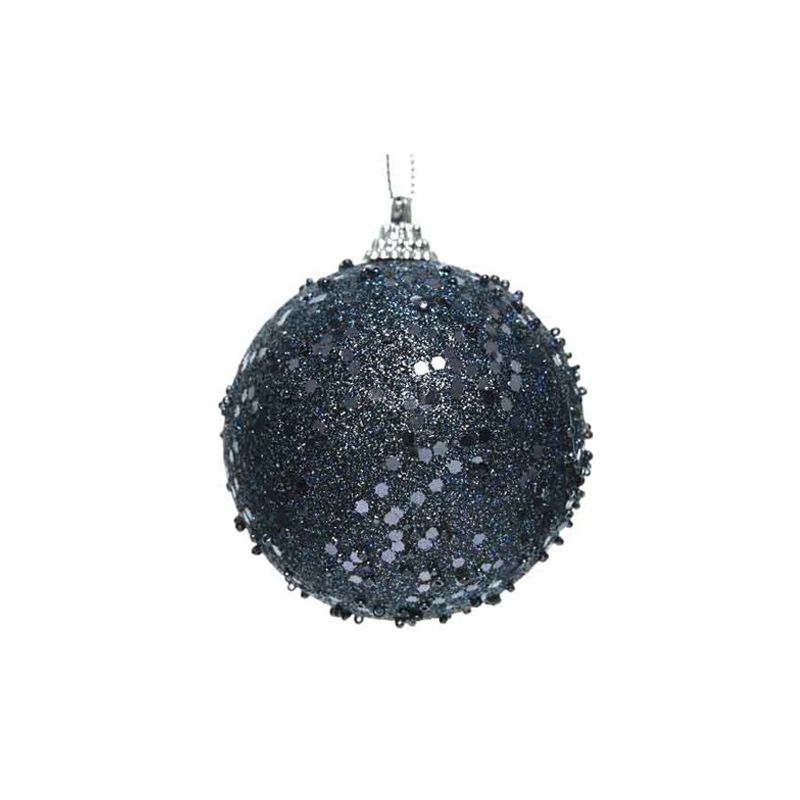 A bauble decorated with sequins in a blue/anthracite colour that will shimmer and shine in your Christmas tree. Sold individually.