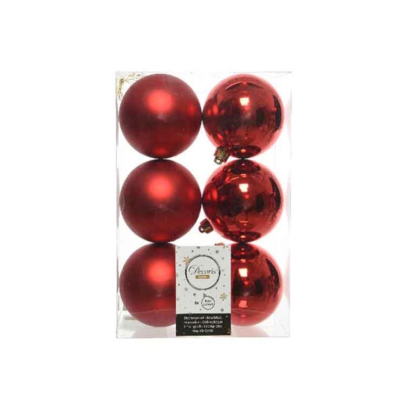 Clear box of 6 red baubles of which 3 shiny and 3 matt to decorate the Christmas tree or Christmas table.