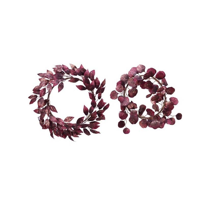 A glittered Christmas wreath made from artificial red foliage. Can be used as decoration around candles, in vases or as Christmas table decorations. Measurements: L48.00-W1.50-H48.00cm.
