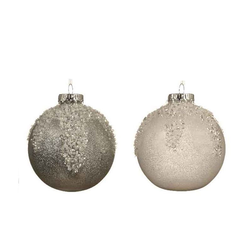 A Christmas tree is not complete without its decorations. Glass baubles add a sense of luxury to your Christmas tree. This glass bauble in white is beautifully decorated. Sold individually.