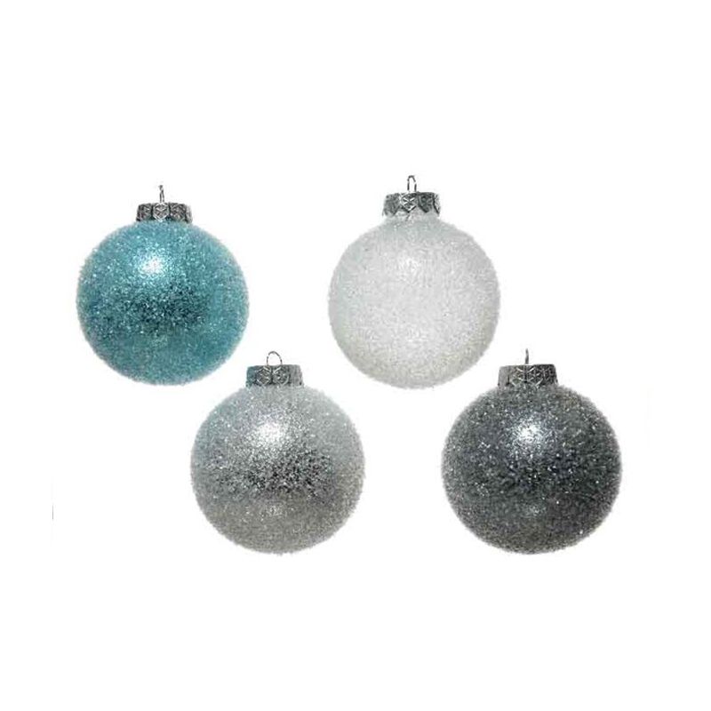 White, silver, blue or transparent bauble with ice finish and a diameter of 8cm. Sold individually.